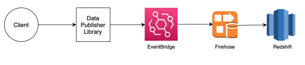 Approach 2: DataPublisherLibrary -> EventBridge -> Firehose -> Redshift.